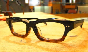 角ばったシャープなスクエアをテレビジョン カットで全体の強さを軽減。だけど耳上がつり上がって、上側でつないだテンプルが更に目尻を強調。