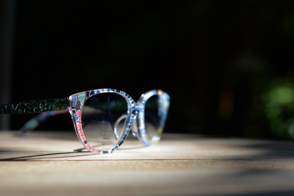 フロントのアセテート生地には新色のリバティファブリックが挟まれています。