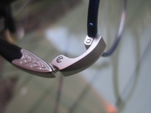 鼻に重さが掛からないようテンプルエンドにはネジどめの細工と