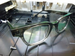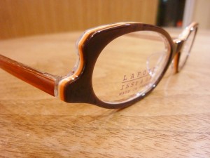これは0.6mmの柔軟性のあるチタンシートと、3mm厚のアセテートを組み合わせた