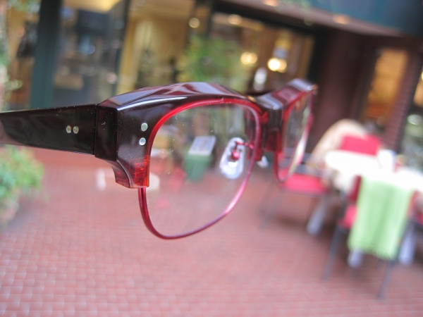 今日ミュゼに立ち寄られた杉本さんにお願いして写真だけでもと撮らせてもらいました。厚いセル地に鋭角カット、そして私がリクエストした赤いリム。美しい仕上がりで、それを手に取れる久しぶりのこのモデル、もちろん私も欲しい。でも、納品は年明けとのことでそれまでは今の眼鏡でがまん、がまん。BY/AKI