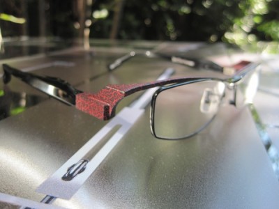 丁番をU字に囲むテンプルは、テンプルのバネ性を高めるスグレモノ☆