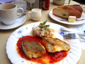 前夜はお客様とたっぷりお肉のハンバーグをいただいたので、今日のお昼はお魚に。