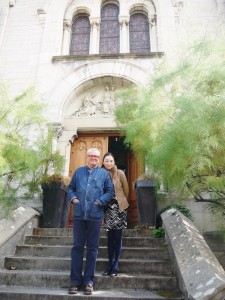 古い修道院を移築したというオフィスの前で1年ぶりの訪問の記念撮影を。