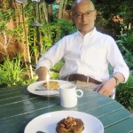 おいしそうなタルトを前にご機嫌な店長をパシャリ。