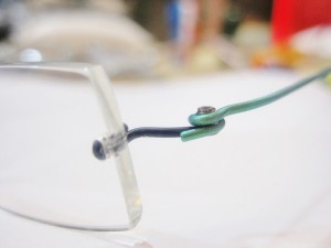 波打つ流麗なラインの先のレンズは小さな穴に接着剤を注入して固定しています。