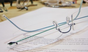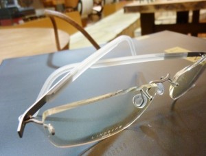 こちらは左右対称の色組、テンプルの形状もレンズの形もお客様によって様々。シンプルさの極みですがいろいろな要素が織り込むことが出来るのが