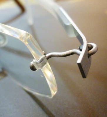 今回入荷したリンドバーグよりリムレス(ふちなし)のヒンジ部分をアップにしてみました。