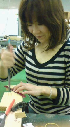 自分でデザイン&選んだ生地を糸鋸とヤスリを使って切り取り、磨いていきます^^
