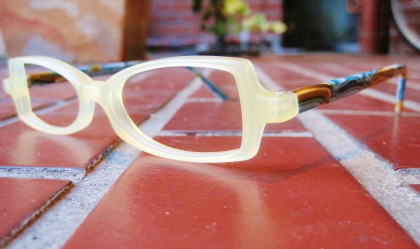 乳白色のフロントに、色鮮やかなターコイズカラーのテンプル