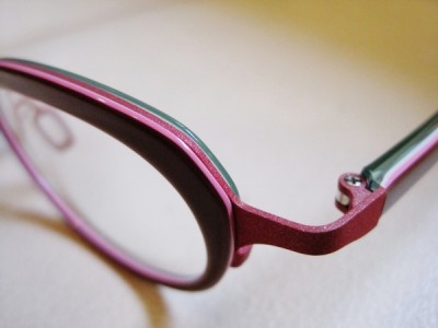 メタルリムの内側に、ごく薄くスライスしたアセテート生地を挟み込んでいます。