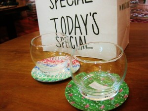 スェーデン製の手作りトレイとデンマーク製のロッキンググラス♪