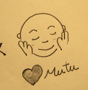 まつ毛とほっぺは私が鉛筆で書き足しました^-^