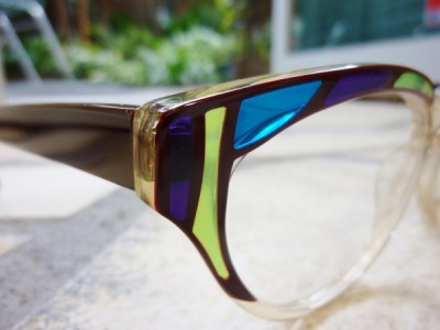 ステンドグラスのようなデザインの上部*クリアカラーのアンダーリムに