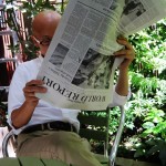 (お休憩中の店長・・・新聞が逆さです・笑)
