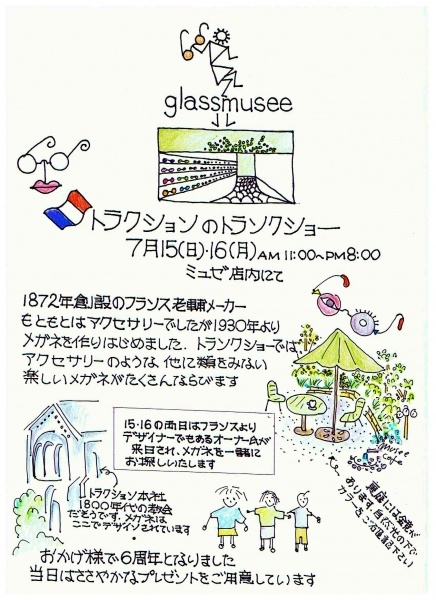 来週の日曜日、月曜日(15.16日)はフランスの老舗トラクションのメガネ展、