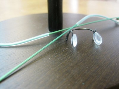 ワイヤータイプのテンプルには明るく鮮やかな黄緑色をセレクト。ブリッジは艶めく黒色です。