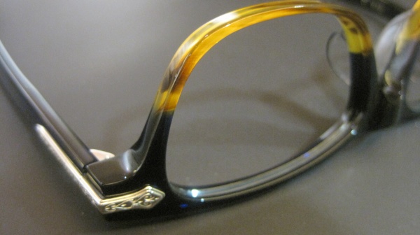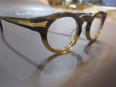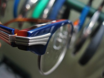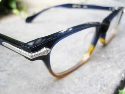 生地のはり合わせによって、見られる角度によっては、フレームのカラーが違って見えたり、お洒落感たっぷりのメガネですね。