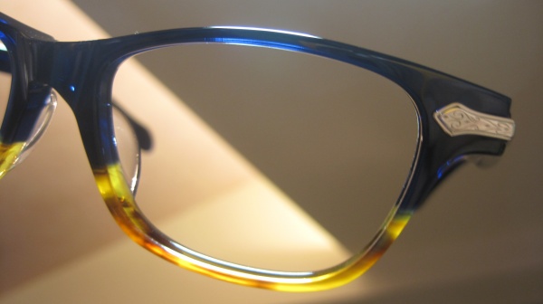 こちらは、ひと足お先にブルーを基調にしたメガネ。