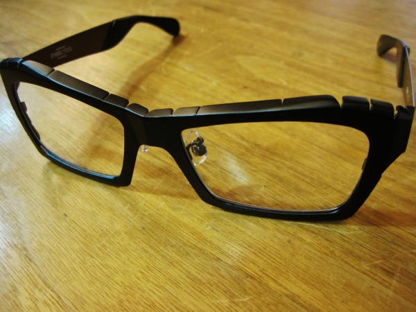 金属板をカットして内側に織り込んだ、なんだかブリキみたいなメガネ