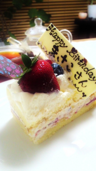 仲良しの友達がお祝いにくれた苺ケーキを 昼と夜に美味しくぱくり♡