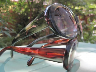 黒セルロイドフレームに、鼻当て部分だけが赤柄生地になっている。