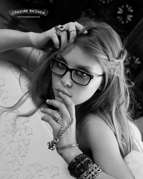 テンプルエンド(モダン)に純銀のクロムハーツモチーフのプラスサイン。全体をお洒落にまとめてくれます。
