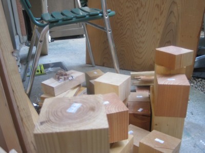 知り合いの大工さんからもらってきた木っ端で用意万端、