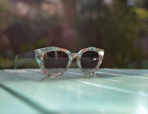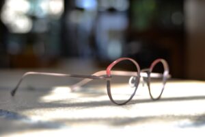 気がつけばまだ登場していなかったお気に入りの1本、スポットライトを浴びた姿で満を持してのご紹介です。遠くから見ると黒い丸眼鏡ですが、近づくと・・・額縁のようにしてクリアの四角が現れます。この四角が何とも言えない絶妙な存在感で too muchにならないところもさすが! 1本で2度楽しいモデルです。